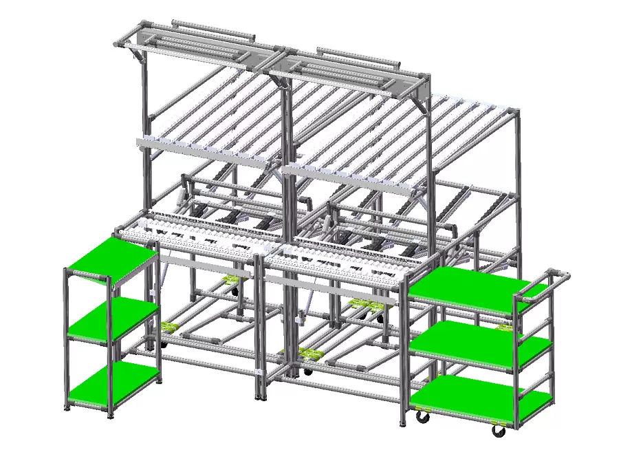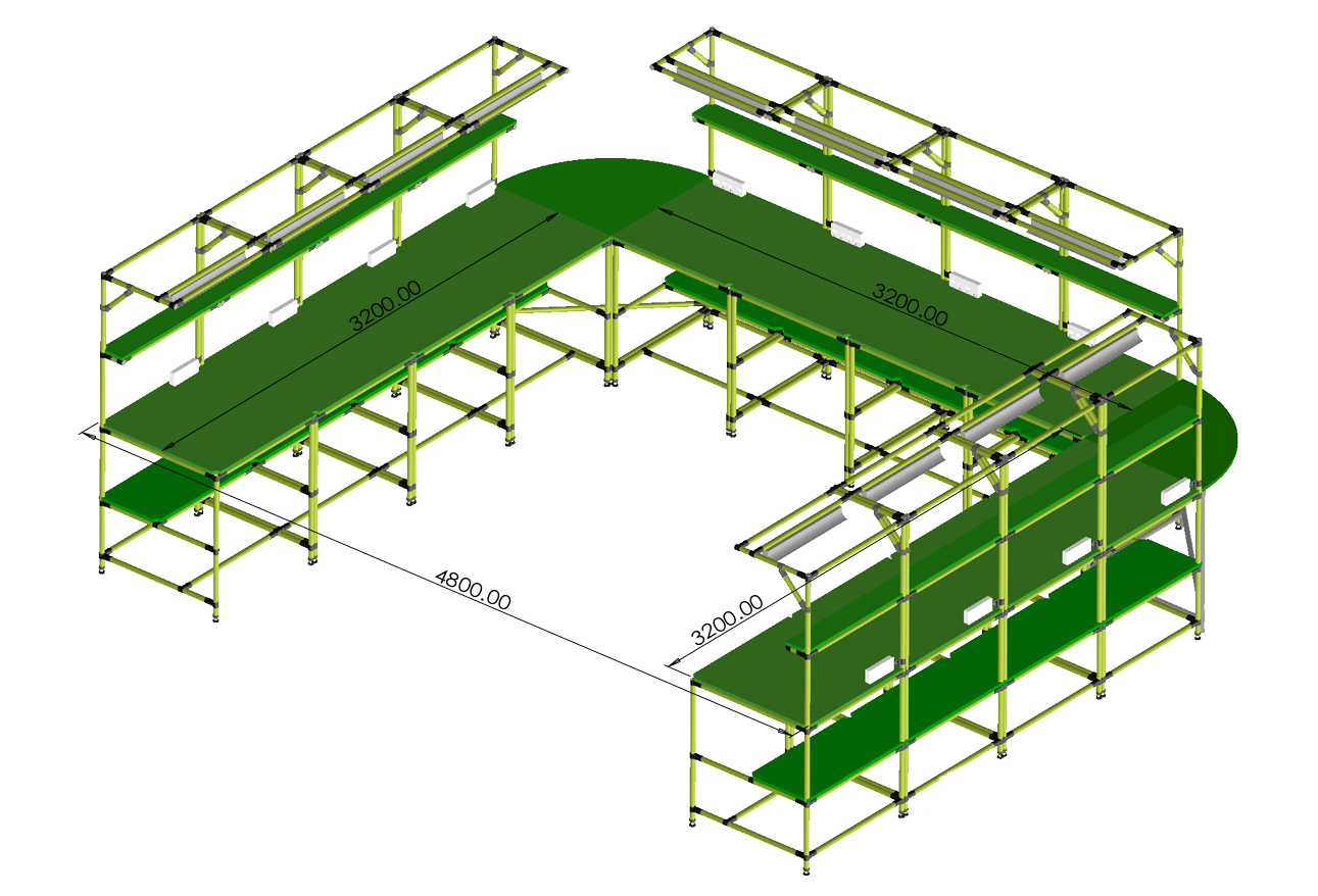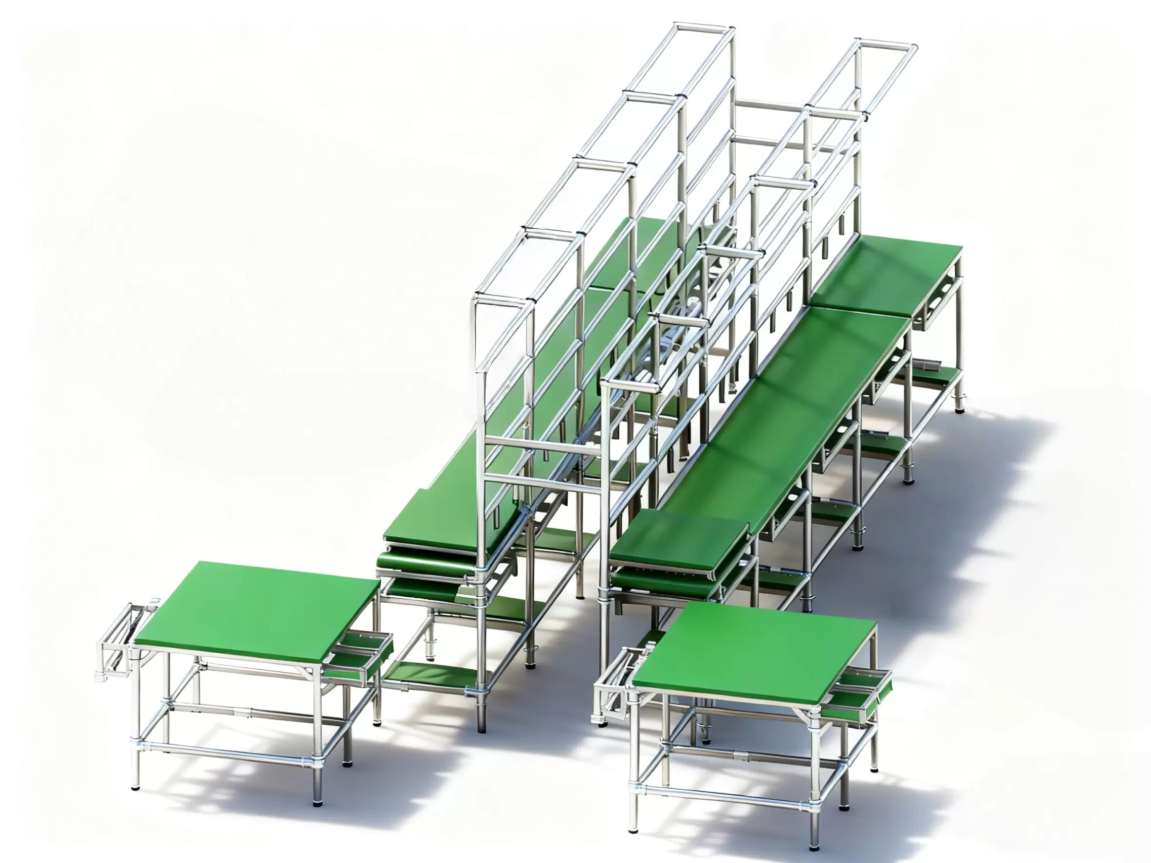 精益管线体工作台,专为精益生产场景打造,采用模块化精益管框架,可灵活搭建 U 型、一字型等线体布局,适配电子组装、产品检测、电商打包等多场景需求。 台面采用防静电绿色面板,耐磨抗污且能释放静电,保障精密元器件生产安全;上方预留电源插座与照明安装位,满足作业供电与补光需求,两侧多层置物架与流利条轨道,可实现物料先进先出,就近取用,大幅减少无效动线。 线体支持快速拆装重组,可随订单需求、工位数量灵活调整布局,精益管表面耐腐蚀、不易生锈,长期使用仍保持稳定结构与整洁外观。它串联起物料上线、组装、检测、打包全流程,让工位衔接更顺畅,作业节奏更高效,助力企业打造标准化、柔性化的精益生产单元,显著提升产能与现场管理效率。